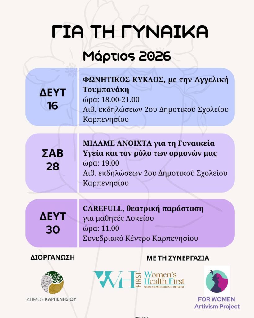 Ο Δήμος Καρπενησίου διοργανώνει μια σειρά από εκδηλώσεις αφιερωμένες στη γυναίκα, την υγεία και τη συλλογική έκφραση.