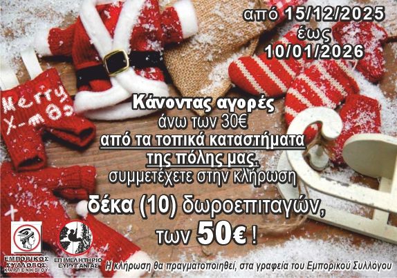 Πιο αναλυτικά, από 15 Δεκεμβρίου 2025 έως 10 Ιανουαρίου 2026 με κάθε αγορά άνω των 30 ευρώ στα τοπικά κατάστημα, οι καταναλωτές θα λαμβάνουν έναν λαχνό συμμετοχής. Θα κληρωθούν 10 δωροεπιταγές των 50 ευρώ, με κάθε τυχερό/ή να έχει την ελευθερία να επιλέξει ο/η ίδιος/α σε ποια τοπική επιχείρηση θα την εξαργυρώσει, απολαμβάνοντας ένα άμεσο και ουσιαστικό όφελος για τις γιορτινές αγορές.