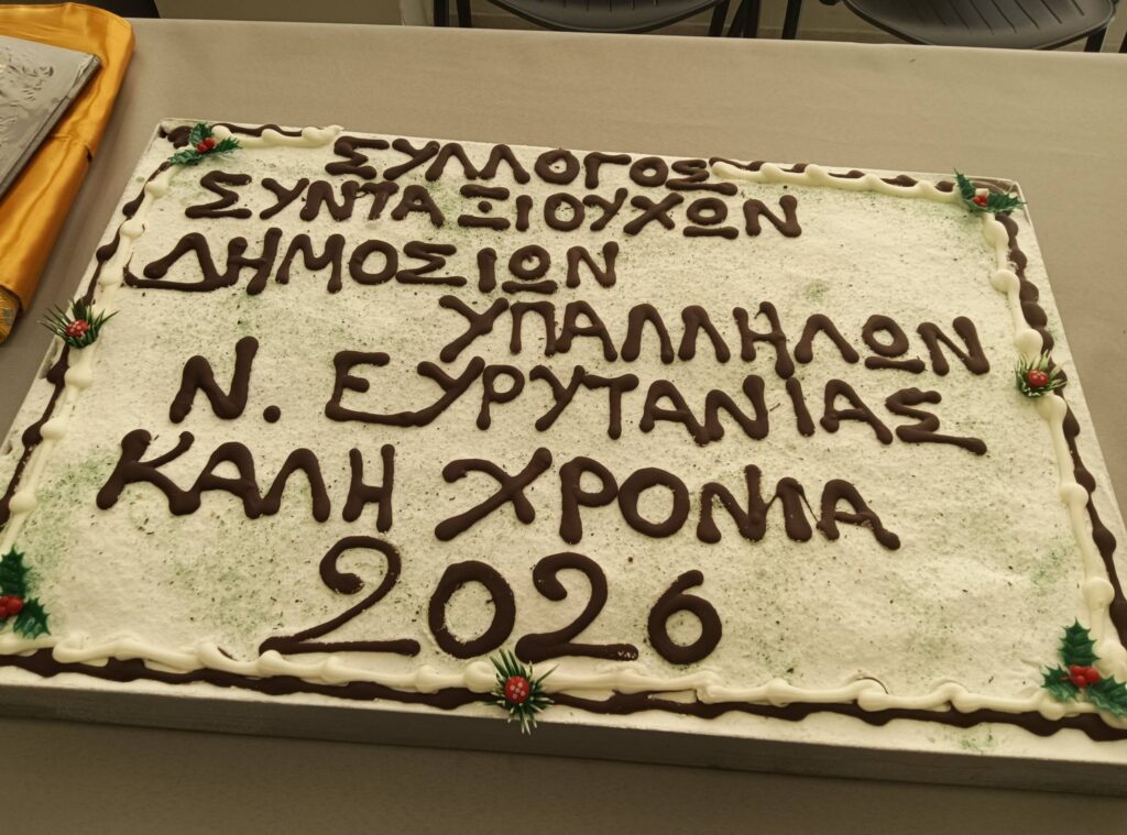Πραγματοποιήθηκε με επιτυχία, την Κυριακή 25 Ιανουαρίου 2026 και ώρα 11:30 το πρωί, η κοπή της πρωτοχρονιάτικης βασιλόπιτας του Συλλόγου Συνταξιούχων Δημοσίων Υπαλλήλων Π.Ε. Ευρυτανίας, στα γραφεία του συλλόγου, στο Καρπενήσι. Η εκδήλωση αποτέλεσε ευκαιρία συνάντησης και ανταλλαγής ευχών, αλλά και συζήτησης γύρω από τα ζητήματα που απασχολούν τους συνταξιούχους δημοσίους υπαλλήλους του νομού.