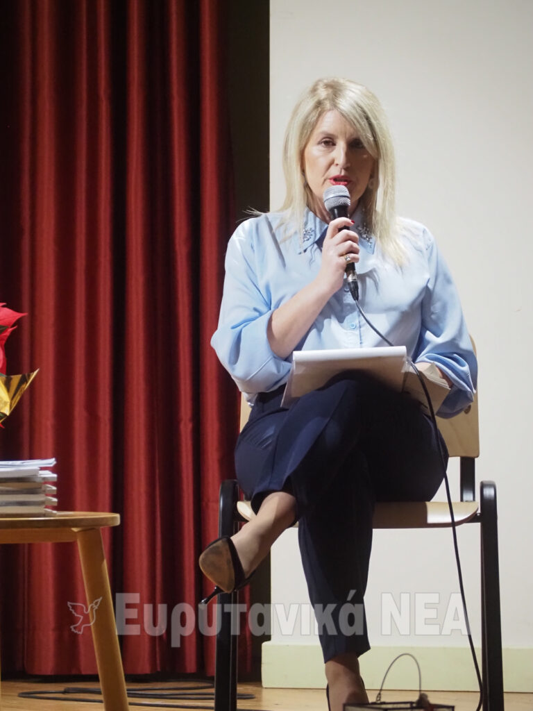 Η βραδιά άνοιξε με τη συγγραφέα να παίρνει πρώτη τον λόγο, μιλώντας για την οικογένειά της, τις ρίζες της στην Ευρυτανία και τον τρόπο με τον οποίο οι προσωπικές εμπειρίες, οι σχέσεις και οι εσωτερικές διαδρομές καθόρισαν τόσο την πορεία της ζωής της όσο και την ανάγκη της να στραφεί στη γραφή. Αναφέρθηκε στο πώς το γράψιμο λειτούργησε ως τρόπος εξωτερίκευσης συναισθημάτων, φόβων και αναζητήσεων, αλλά και ως μια διαδικασία αυτογνωσίας.