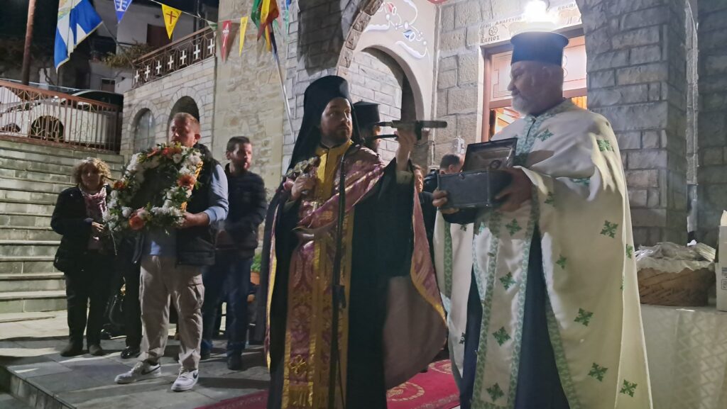 Το απόγευμα της Παρασκευής (31/10) τελέστηκε ο Πανηγυρικός Εσπερινός μετ’ Αρτοκλασίας, ενώ ακολούθησε η καθιερωμένη λιτανεία της Ιεράς Εικόνος των Αγίων Αναργύρων στους δρόμους του χωριού. Την πομπή συνόδευσε φιλαρμονική μπάντα από την Άρτα, που έδωσε ξεχωριστό, εορταστικό τόνο στην ατμόσφαιρα.