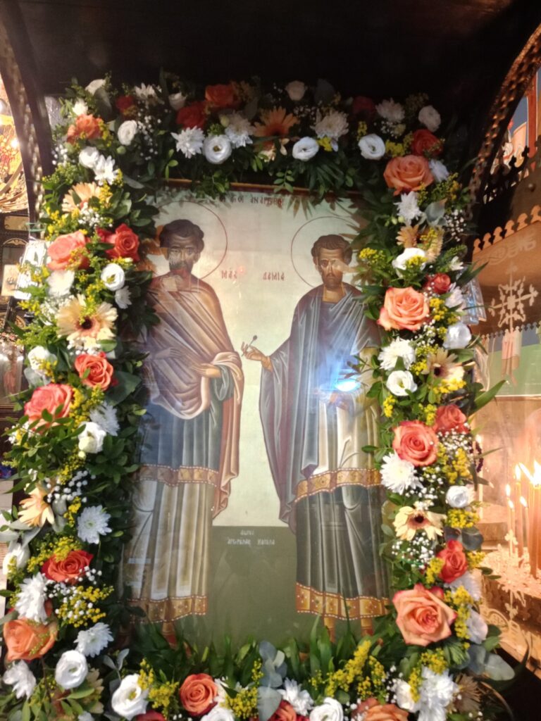 Το πρωί του Σαββάτου (1/11) τελέστηκε η Πανηγυρική Αρχιερατική Θεία Λειτουργία, προεξάρχοντος του Μητροπολίτη Καρπενησίου κ. Γεωργίου, ο οποίος στον λόγο του ανέδειξε το παράδειγμα ανιδιοτελούς προσφοράς και αγάπης των Αγίων Αναργύρων. Το εορταστικό διήμερο ολοκληρώθηκε το απόγευμα της ίδιας ημέρας με τη τέλεση Εσπερινού και Παρακλήσεως προς τιμήν των Αγίων.