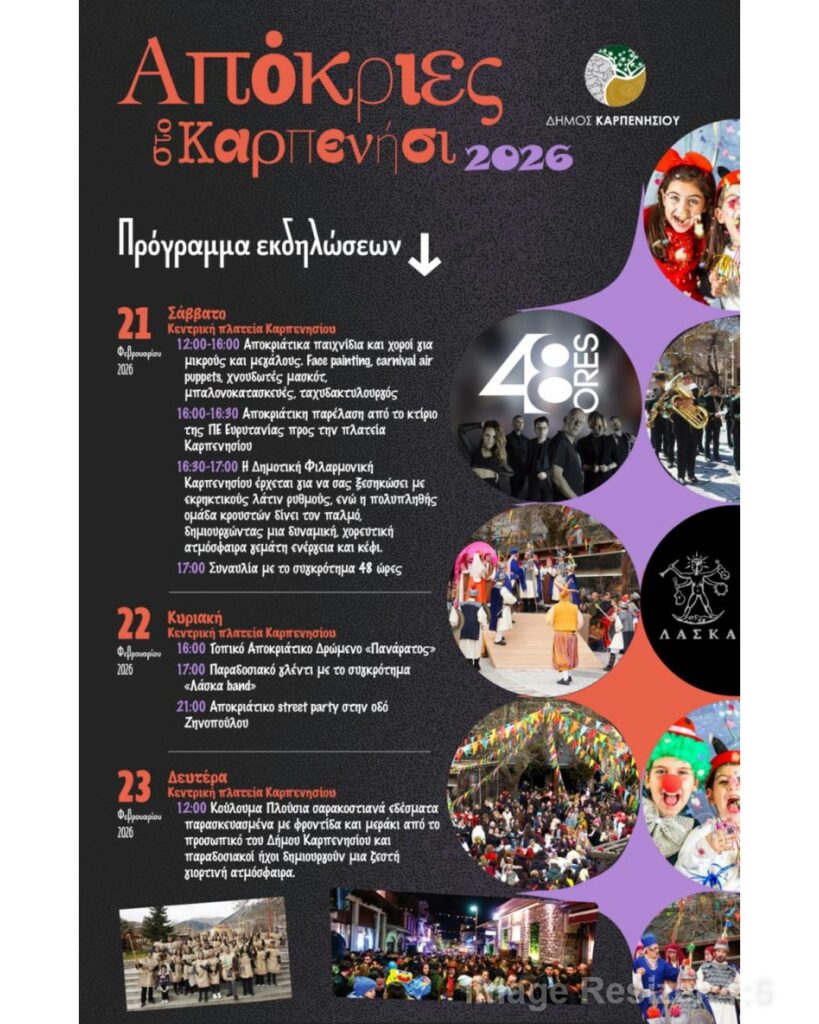 Ορεινές Απόκριες… Το πρόγραμμα των εκδηλώσεων στο Καρπενήσι για το τριήμερο 21-23 Φεβρουαρίου (vid)