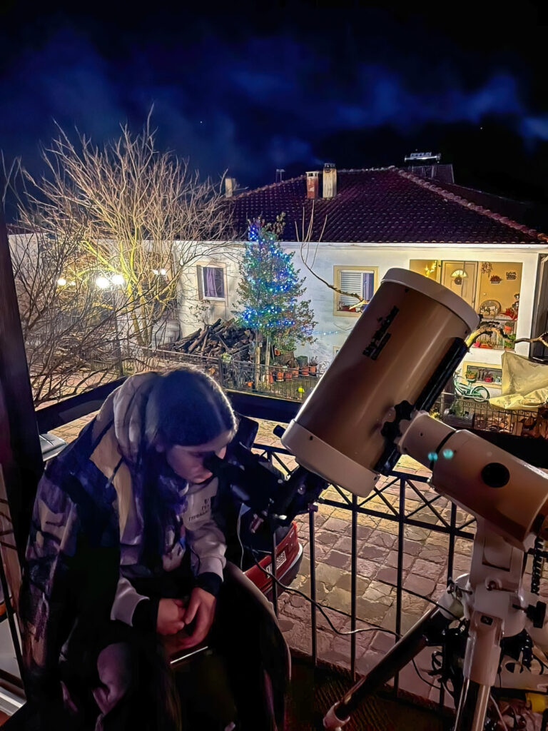Το πρόγραμμα ολοκληρώθηκε με αστροπαρατήρηση, κατά την οποία οι συμμετέχοντες είχαν την ευκαιρία να παρατηρήσουν τον πλανήτη Κρόνο και τη Σελήνη μέσω του ρομποτικού τηλεσκοπίου του Συλλόγου. Η εμπειρία αποτέλεσε το αποκορύφωμα της επίσκεψης, προσφέροντας στα παιδιά μια άμεση και βιωματική επαφή με τον νυχτερινό ουρανό.