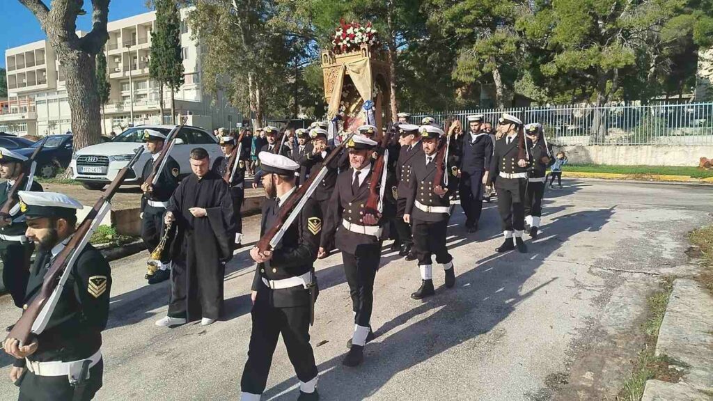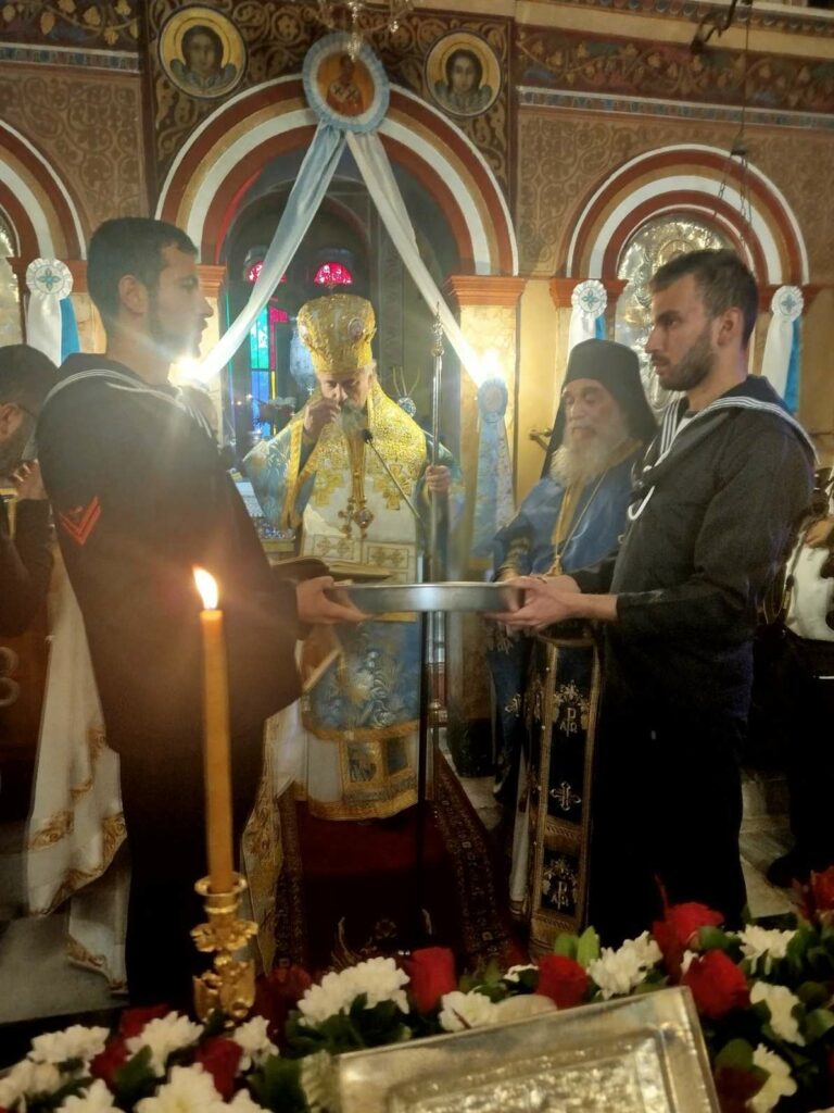 Με εκκλησιαστική μεγαλοπρέπεια εορτάστηκε η μνήμη του Αγίου Νικολάου, προστάτη του Πολεμικού Ναυτικού και γενικότερα των ναυτιλομένων. Κατά την φετινή πανήγυρη ιδιαίτερη ευλογία και σημείο καυχήσεως και πνευματικής χαράς για τα στελέχη του Πολεμικού Ναυτικού αλλά και των ευλαβών προσκυνητών, ήταν η παρουσία των Ιερών Λειψάνων της Αγίας Ισαποστόλου Ελένης προερχόμενα από την Ιερά Μονή Παναγίας της Προυσιώτισσας.