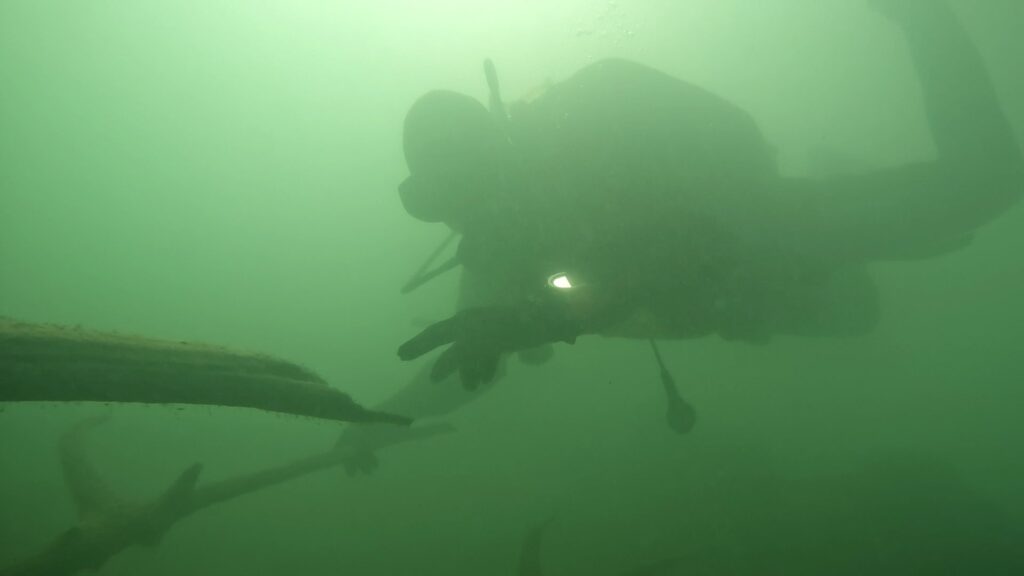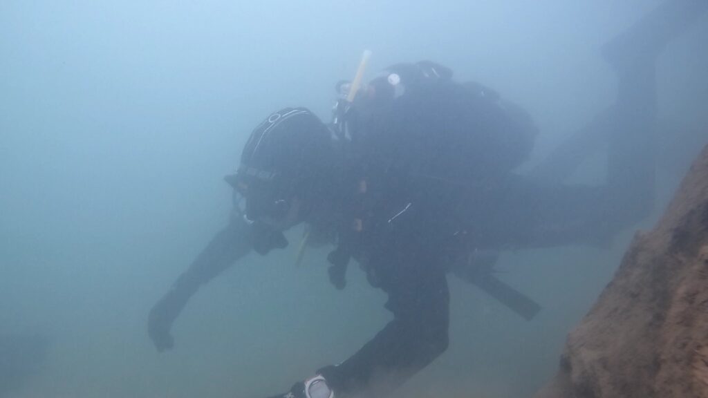 Η ομάδα αποτελούνταν από τέσσερις δύτες –εκπαιδευτές όλοι– και έναν βιντεολήπτη. «Στόχος μας ήταν να βρούμε την εκκλησία, να δούμε αν στέκει ακόμα και να καταγράψουμε όσα περισσότερα στοιχεία μπορούσαμε», εξηγεί στα «Ευρυτανικά Νέα». Οι δυσκολίες εμφανίστηκαν από την πρώτη στιγμή. «Από την επιφάνεια υπήρχε θολούρα, ενώ κάτω από τα δέκα μέτρα επικρατούσε απόλυτο σκοτάδι. Στα τριάντα μέτρα το κομπιούτερ έδειξε 12 βαθμούς Κελσίου. Προχωρούσαμε κυριολεκτικά στο σκοτάδι, η ορατότητα ήταν στο μισό μέτρο!».