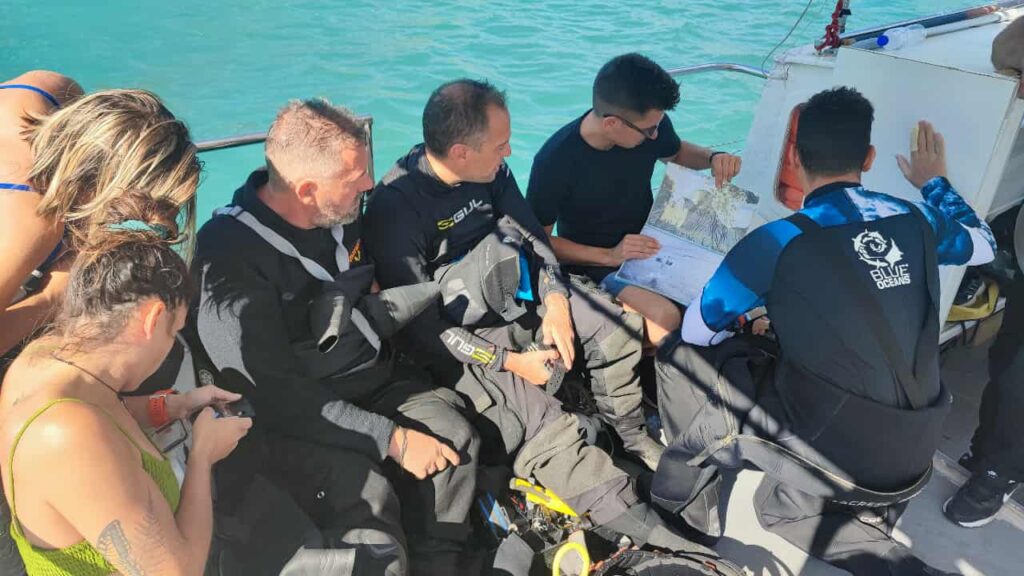 Επικεφαλής της αποστολής ήταν ο εκπαιδευτής καταδύσεων και πραγματογνώμονας Ευάγγελος Παπατζιτζές, από το καταδυτικό κέντρο Athens Blue Dream, μαζί με τους συνεργάτες του Αλέξανδρο Σκουμάτζο και Γεωργία Καμπέρη, ενώ καθοριστική ήταν και η παρουσία του δύτη-βιντεολήπτη Γιώργου Αλευρομύτη. Η αποστολή δεν θα μπορούσε να πραγματοποιηθεί χωρίς την πολύτιμη βοήθεια υποστηρικτών. Ο Παναγιώτης Μακρής, χειριστής της βάρκας, εξασφάλισε με ακρίβεια τη μεταφορά και την καθοδήγηση της ομάδας. Ο Φάνης Φούκας ανέλαβε τη διεκπεραίωση των γραφειοκρατικών ζητημάτων, ώστε η προσπάθεια να γίνει με όλες τις απαιτούμενες άδειες και διαδικασίες. Την επιχείρηση στήριξε επίσης η Περιφερειακή Ενότητα Ευρυτανίας, με προσωπικό ενδιαφέρον του Αντιπεριφερειάρχη Άρη Τασιού.