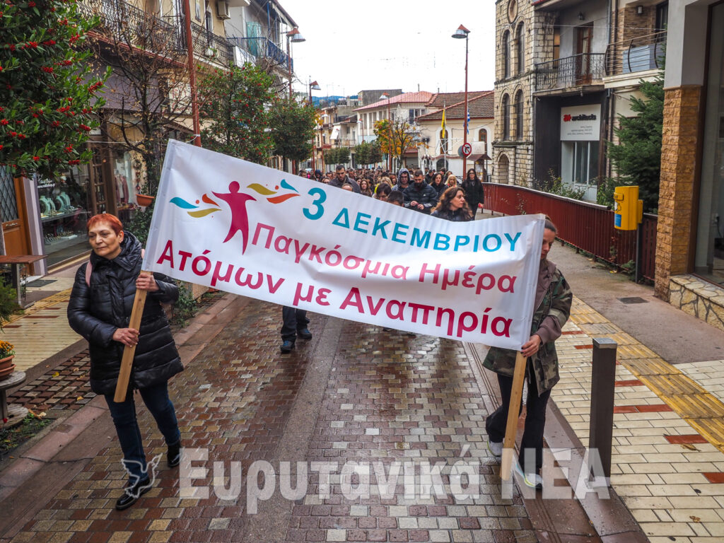 Το πρωί της Τετάρτης 3 Δεκεμβρίου 2025, ανήμερα της Παγκόσμιας Ημέρας Ατόμων με Αναπηρία, πραγματοποιήθηκε στο κέντρο του Καρπενησίου Πορεία Ευαισθητοποίησης με διοργανωτή τον Σύλλογο Γονέων και Κηδεμόνων ΑμεΑ Ευρυτανίας. Στην πορεία συμμετείχαν μέλη δομών και φορέων που υποστηρίζουν άτομα με αναπηρία, εκπαιδευτικοί καθώς και μαθητές σχολείων της πόλης, στέλνοντας μήνυμα συμπερίληψης, ισότητας και σεβασμού.