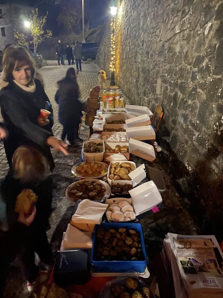 Ξεχωριστή ήταν η παρουσία των μικρών φίλων του χωριού, οι οποίοι παρέδωσαν τα γράμματά τους στον Άι Βασίλη, που έκανε την εμφάνισή του με τον σάκο του, σκορπίζοντας χαμόγελα και ενθουσιασμό. Η βραδιά πλαισιώθηκε από μουσική, γλυκίσματα και κεράσματα, με ζεστό τσάι και ρακόμελο, τα οποία προσφέρθηκαν με τη συμβολή των κατοίκων.