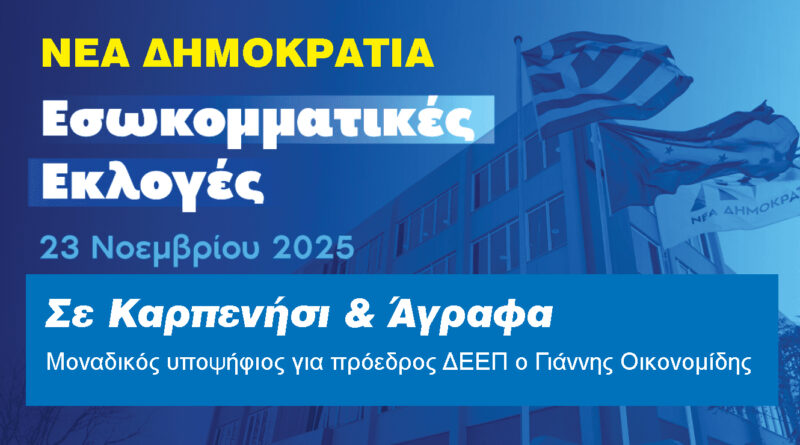 Η διαδικασία για τις εσωκομματικές εκλογές της Νέας Δημοκρατίας στην Ευρυτανία προχωρά με δύο εκλογικά κέντρα, σε Καρπενήσι και Άγραφα