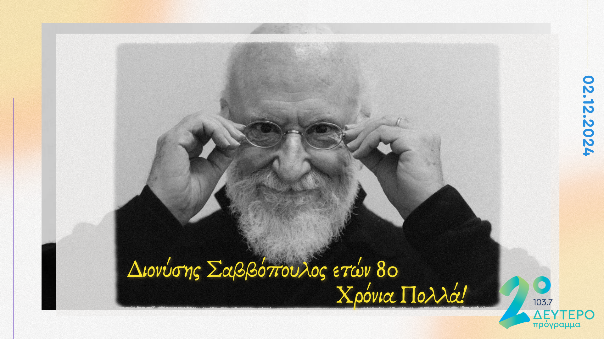 Το Δεύτερο Πρόγραμμα 103,7 γιορτάζει τα γενέθλια του σπουδαίου τραγουδοποιού και του εύχεται ολόψυχα Χρόνια Πολλά και Δημιουργικά! Ο Διονύσης Σαββόπουλος γεννήθηκε στη Θεσσαλονίκη, στις 2 Δεκεμβρίου του 1944 και πριν καλά – καλά κλείσει τα 20,κατέβηκε στην Αθήνα, οδηγώντας ένα «Φορτηγό», πάνω στο οποίο έμαθαν οδήγηση όλοι οι μουσικοί δημιουργοί της εποχής μας. Επιδραστικός […]
