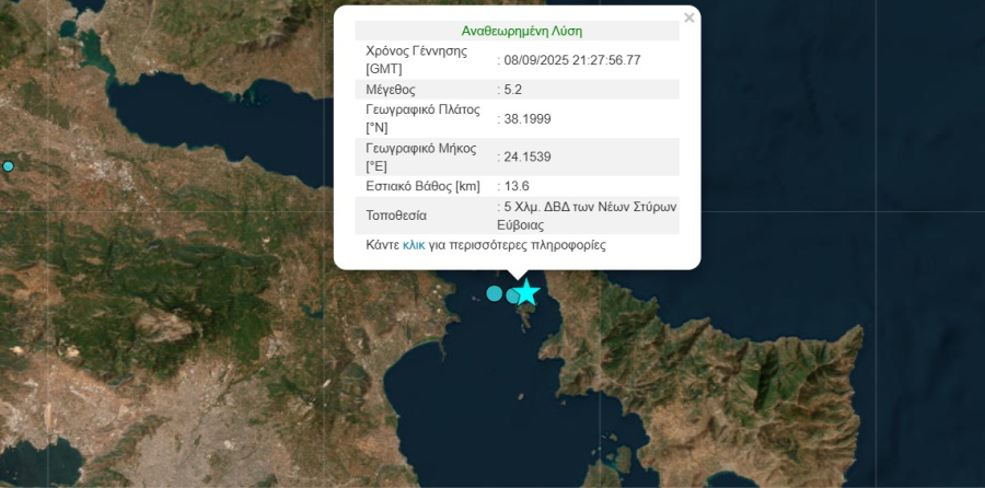 Σύμφωνα με την τελική λύση του Γεωδυναμικού Ινστιτούτου μετά από εκτίμηση σεισμολόγου ο σεισμός ήταν 5,2 Ρίχτερ και το εστιακό βάθος 13 χιλιομετρα.