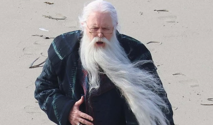 Στις φωτογραφίες, ο 79χρονος Λίθγκοου είναι σε μια παραλία, φορά μανδύα, έχει μακριά λευκή γενειάδα και τα μικρά γυαλιά του στέκονται στην άκρη της μύτης του, τα βασικά χαρακτηριστικά του ήρωα των βιβλίων της Τζ. Κ. Ρόουλινγκ.